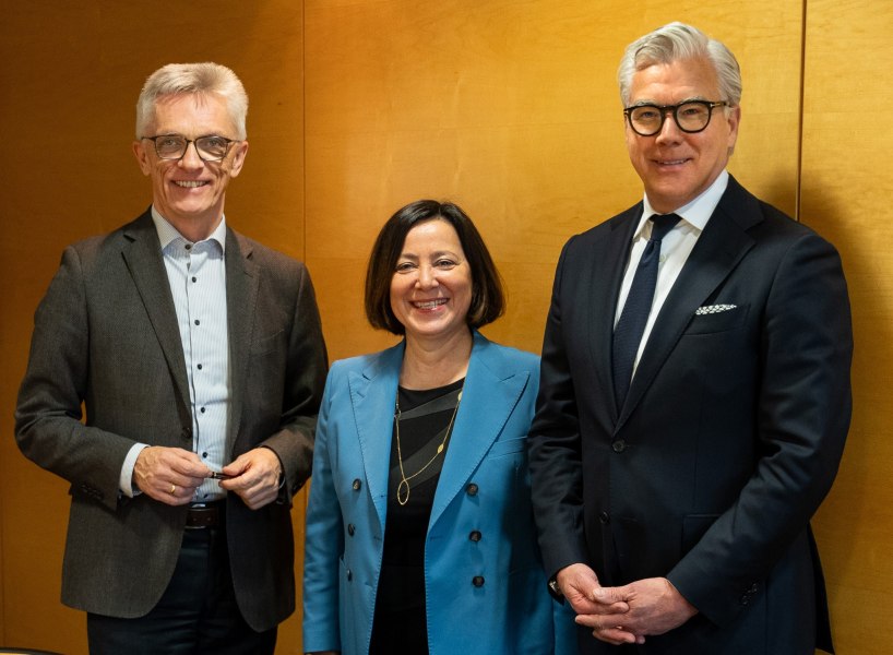 Press photo with Bernhard J. Stempfle (Managing Director Finance and Infrastructure, Messe Düsseldorf), Maria Kofidou (Managing Director, Düsseldorf Congress GmbH), and Johannes Molderings (Managing Director, lemonpie Eventcatering GmbH). Image source: Arne Birken, Messe Düsseldorf